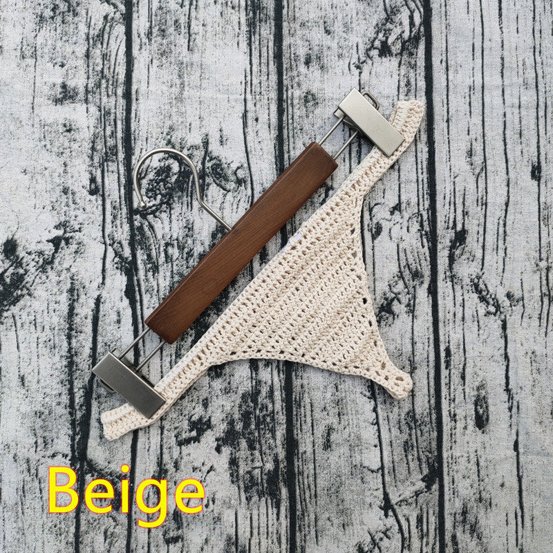 Handmade Crochet Sexy Bikini Women's Beach Bohemian Swimming Trunks - Beige / M